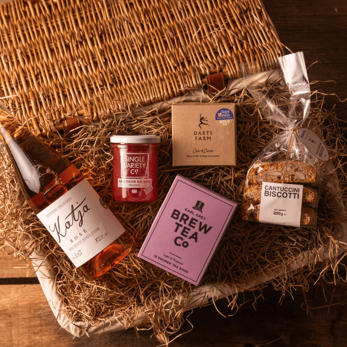 A lovely hamper to surprise a loved one or simply say thank you. From our handmade Cow & Cacao chocolate truffles, Single Variety preserve and Katja Rose sparkling cider to the finest Italian biscotti and speciality tea.