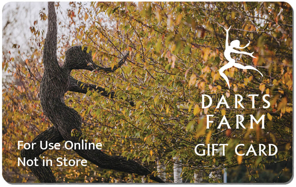 *The gift card value can only be redeemed for merchandise on the Darts Farm WEBSITE and NOT in the STORE.