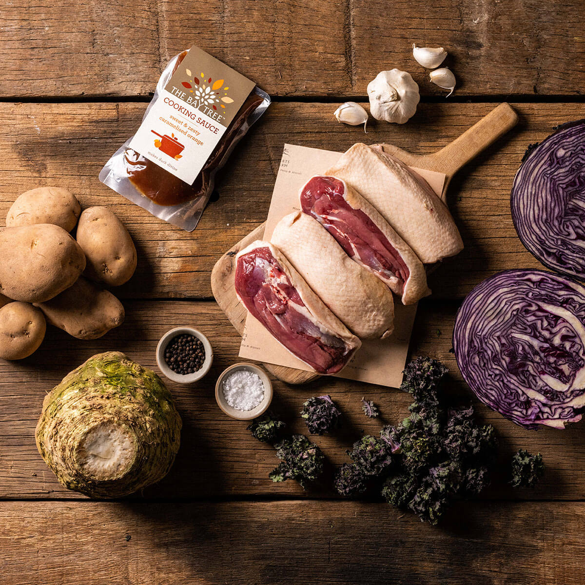 Your 'Beautiful Duck Breast with Seasonal Veg' box will include;
