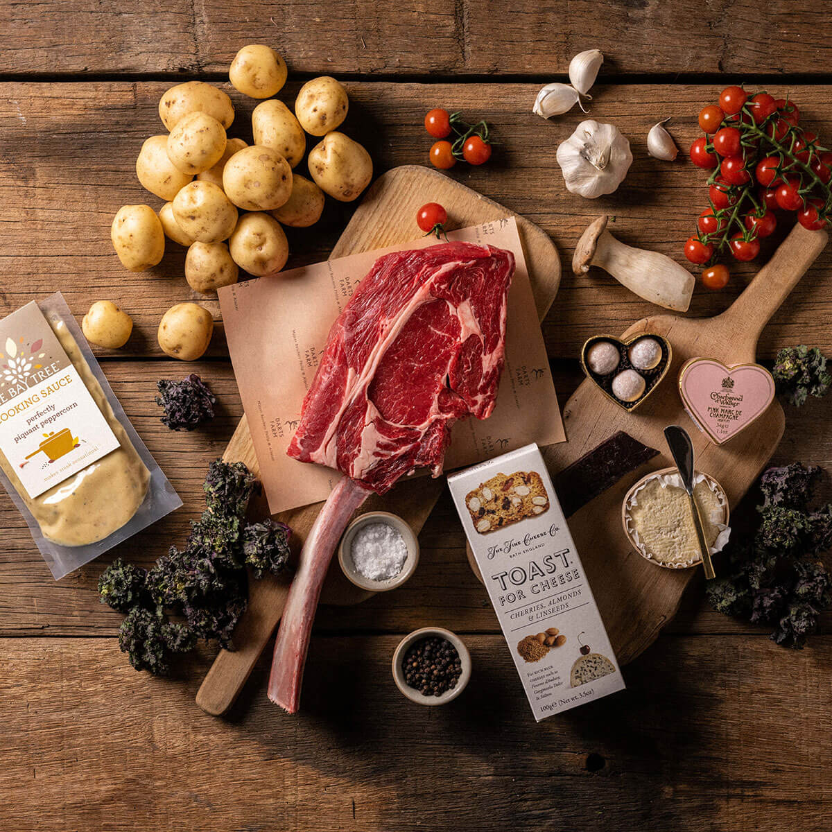 This box is filled with everything you need to wow a loved one with a show-stopping Tomahawk steak feast; with an incredibly tender dry-aged Tomahawk steak, followed by a rich & delicate St Jude artisan cheese and Charbonnel et Walker Marc de Champagne Truffles. Treat yourself and a loved one to a beautiful, home cooked meal, using the best ingredients.