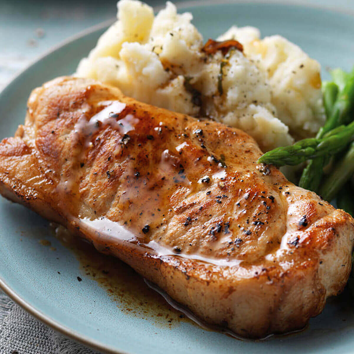 A very versatile cut that can be cooked via sauteing, grilling or braising. Our Master Butchers take the pork steak from the shoulder, which makes it a very flavoursome and well marbled cut as it includes sections of a number of muscles and significantly more fat than a chop.