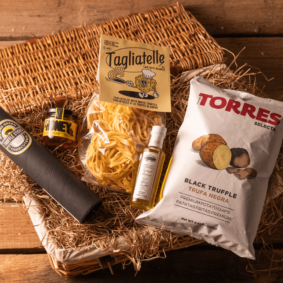A selection of premium truffle provisions from real artisan food producers. From Extra virgin olive oil delicately infused with the finest white truffles to hand-crafted crisps made using real black summer truffle from Patatas Torres. This hamper is sure to delight any truffle lover.