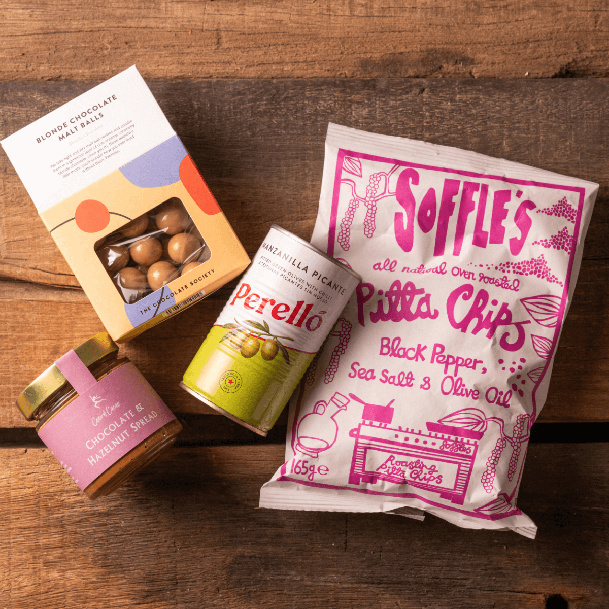 The ultimate handpicked selection of treats for a loved one. From our Cow & Cacao Chocolate & Hazelnut Spread made on the farm by our Chocolatiers to perfectly crisp Black Pepper, Sea Salt & Olive Oil Soffles pitta crisps!