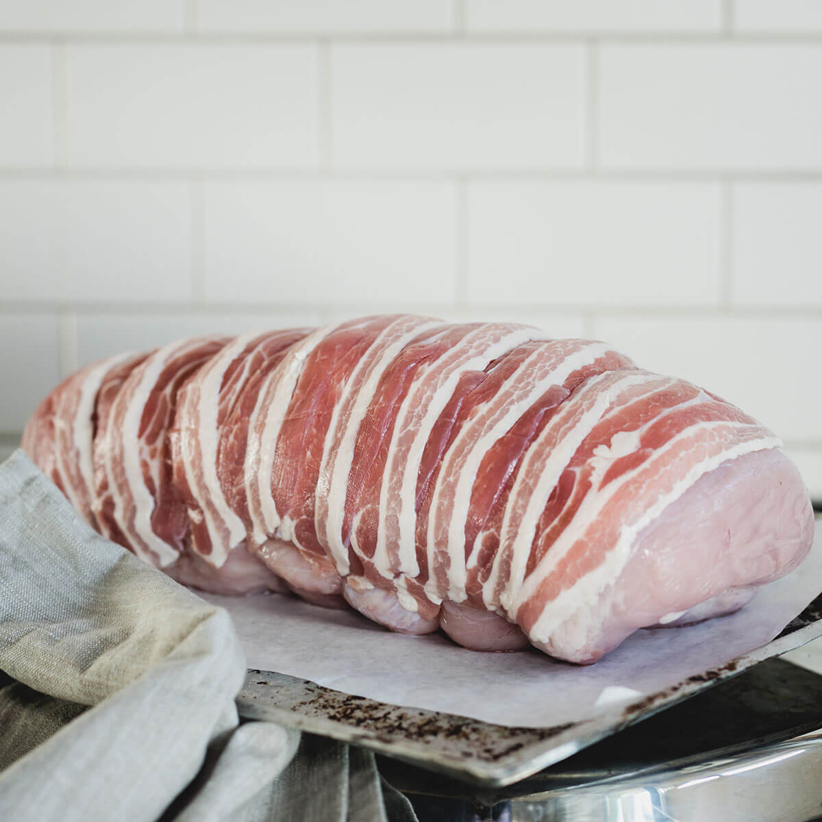 This succulent, boneless breast of turkey come wrapped in bacon and stuffed with your choice of stuffing!